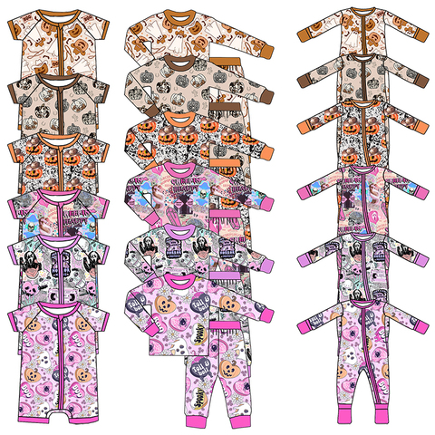 Bán Chạy Nhất Bé Tùy Chỉnh Phương Tây Halloween In Ấn Mềm Một Mảnh Hai Cách Dây Kéo Đồ Ngủ Tre